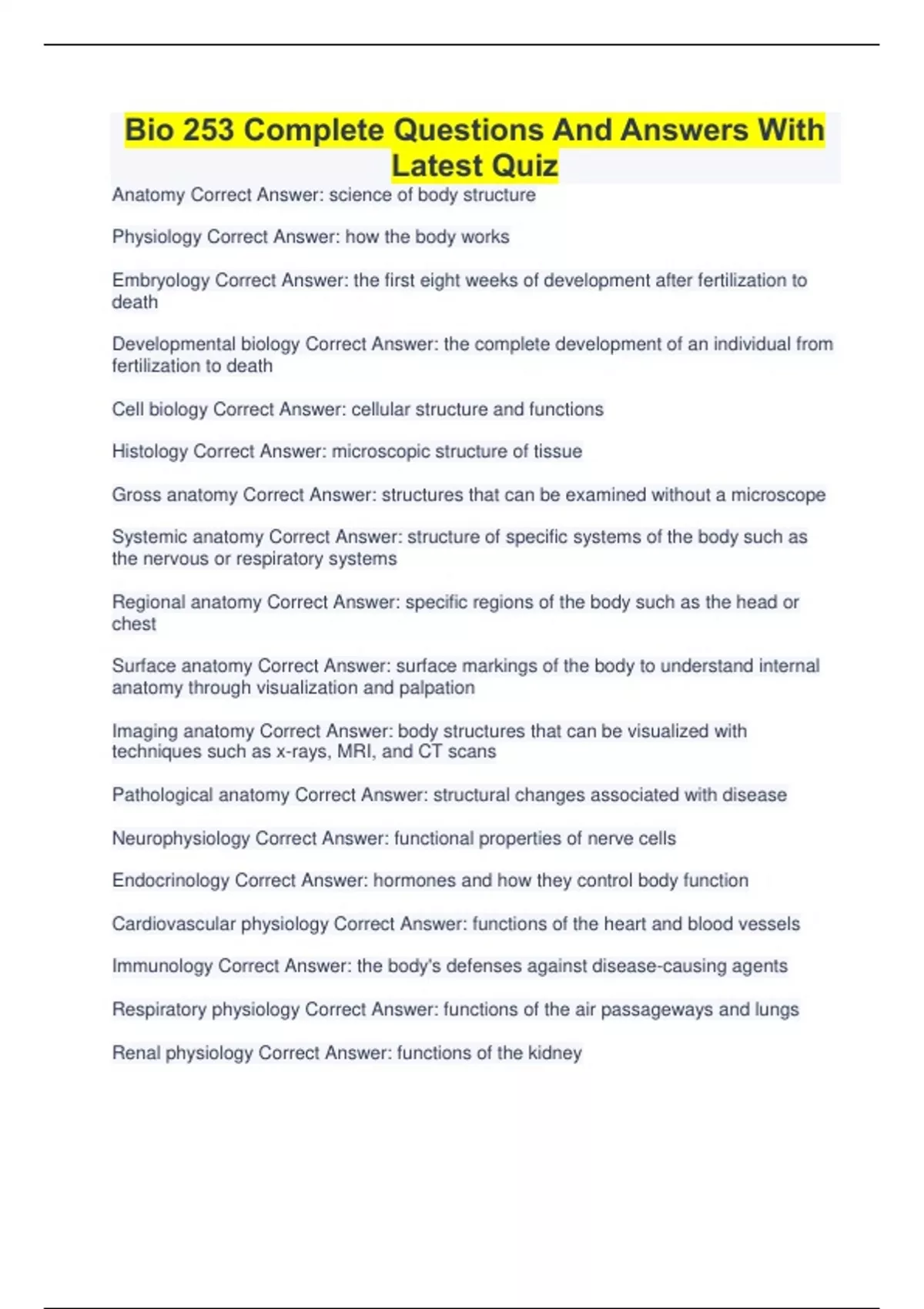 BIO 253 Complete Package With Verified Solutions 2023 Updates Bio 253 Final Exam Questions And Answers Graded A+ BIO 253 Jackson College Test Questions And Answers With Verified Solutions