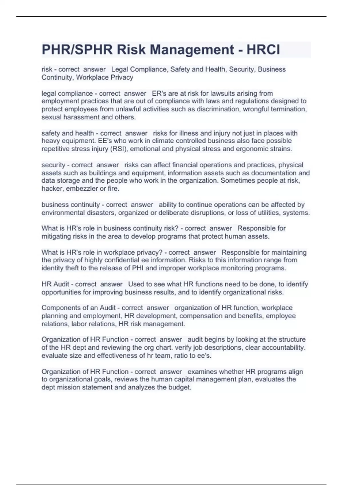 PACKAGE DEAL OF HRCI QUESTION AND ANSWERS ALREADY PASSED 2023
