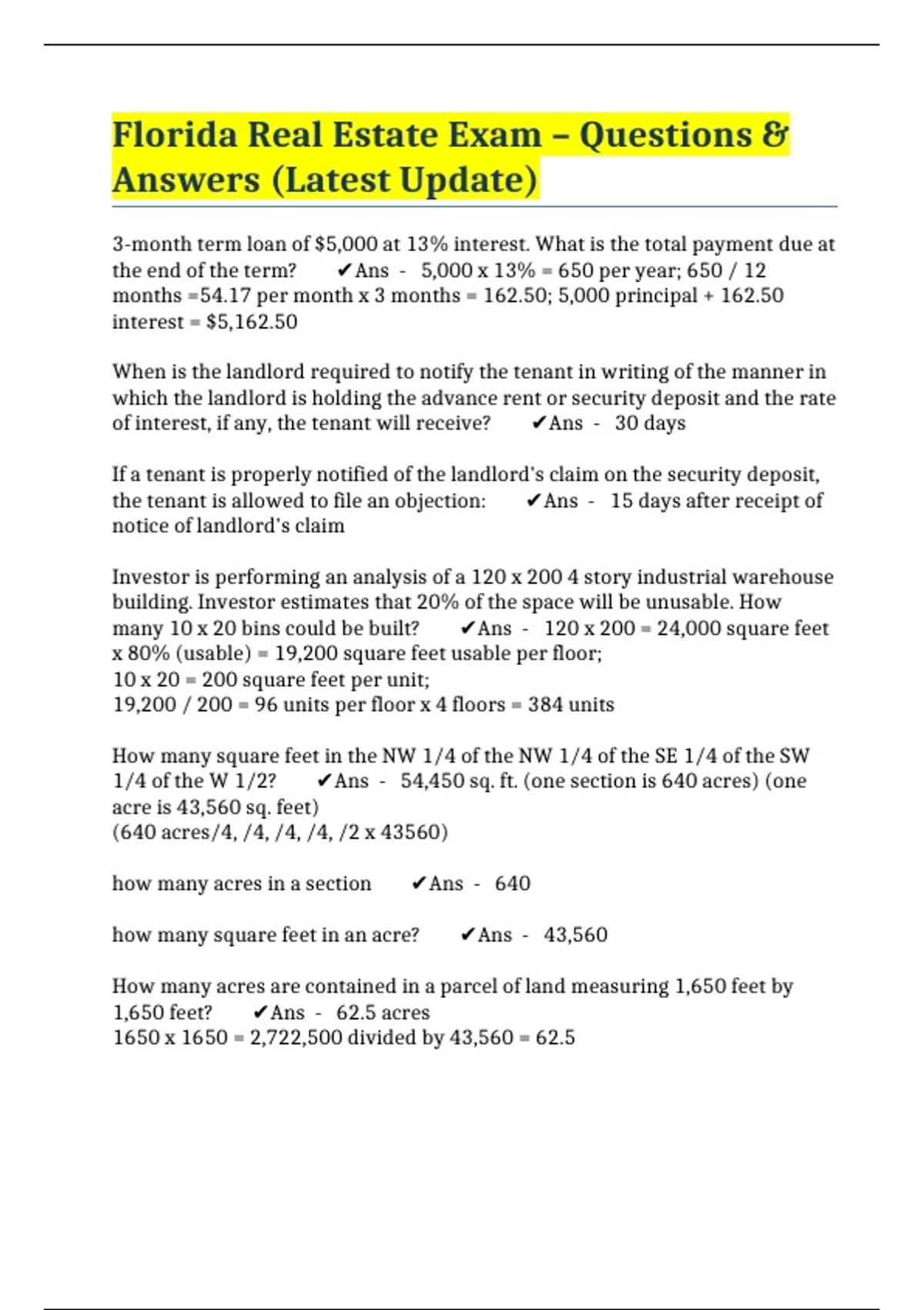 PACKAGE::: FLORIDA REAL ESTATE EXAMS (LATEST UPDATE)