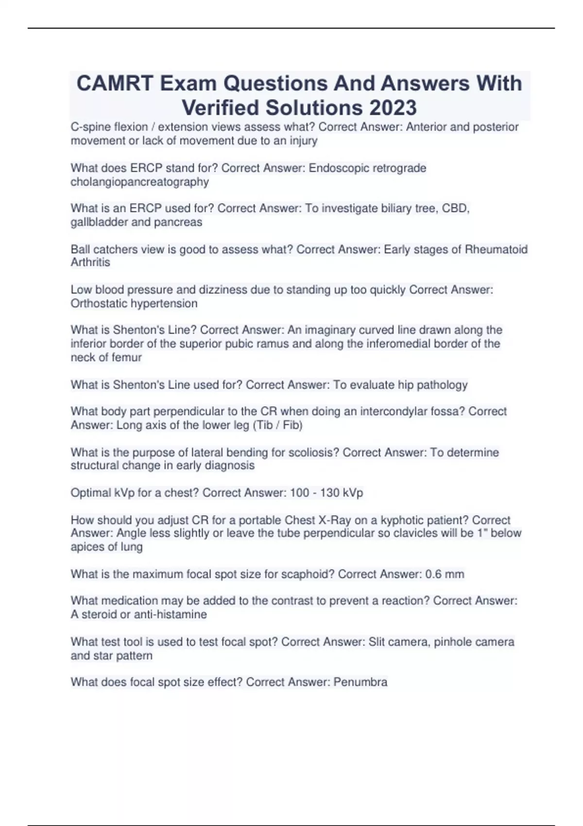 CAMRT Bundled Exams with complete solution:(Full solution pack) MRI CAMRT: Pathology Verified Questions And Answers 2023 Quiz CAMRT-MRI In Practice Chapter 8 Artifacts Questions And Answers 2023