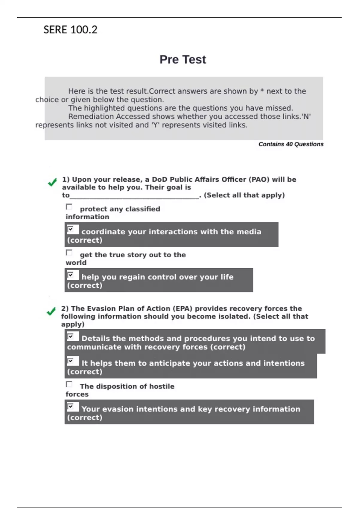 SERE Verified Package With Latest Solutions SERE 100.2 Complete Questions and Answers 2023 Solutions