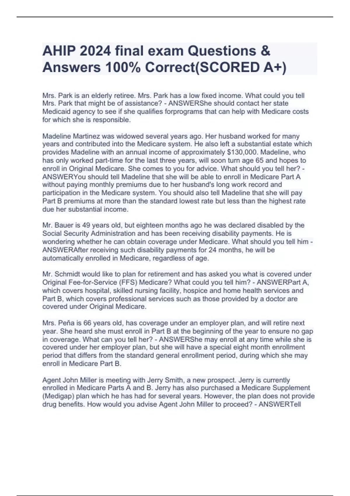 2024 AHIP Questions & Answers 100% Correct!!