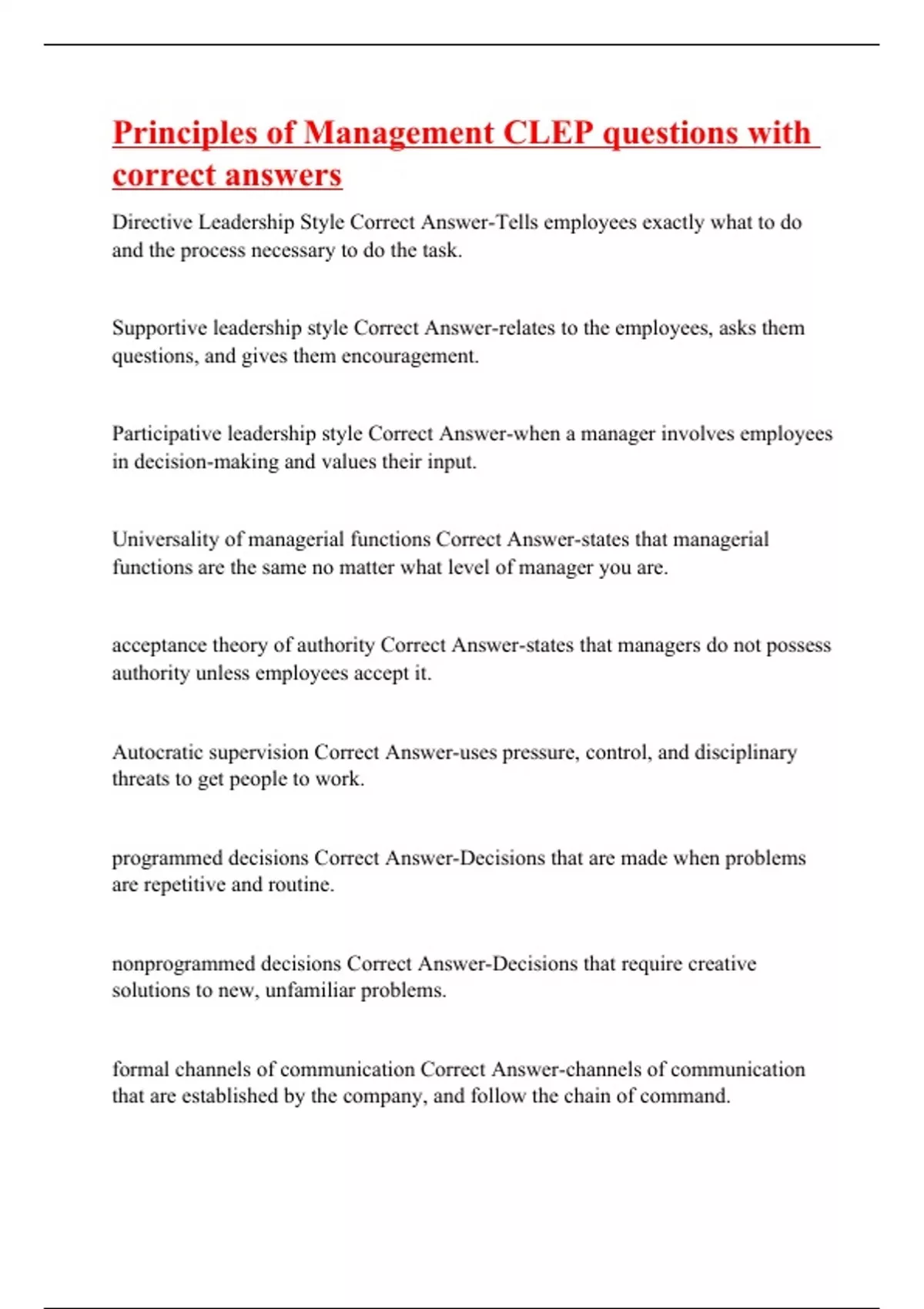 Principles of Management CLEP Tests Bundle Set