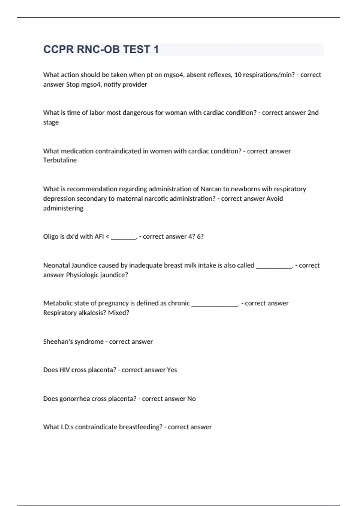 A major characteristic of autosomal recessive disorder is - correct answer Possible consanguinity A 2100 gram IUGR infant born at 38 weeks has an enlarged liver and spleen. Jaundice is present. To confirm cytomegalovirus infection, a culture should be obtained from the neonate's blood, spinal fluid, or urine within ______ - correct answer 2-4 week