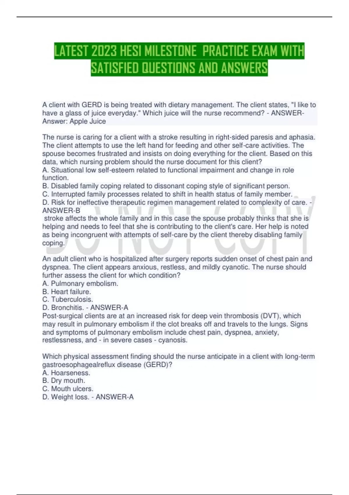 HESI MILESTONE 2 Version 1 With 100% Correct Questions And Answers 2 Exam (elaborations) HESI MILESTONE 2 VERSION 2 EXAM WITH PERFECT QUESTIONS AND ANSWERS 3 Exam (elaborations) HESI Milestone Version 3 Retake Exam with Complete Solutions 4 Exam (elaborations) LATEST 2023 HESI MILESTONE PRACTICE EXAM WITH SATISFIED QUESTIONS AND ANSWERS