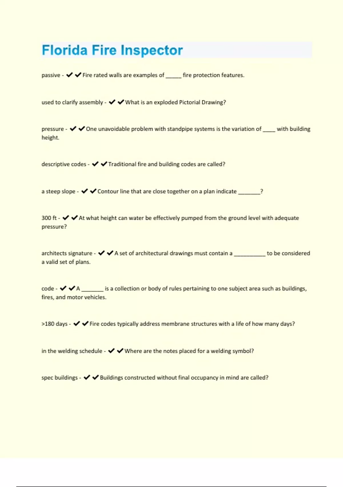 Florida fire Inspector test questions Exam Solved 100% Correct!!