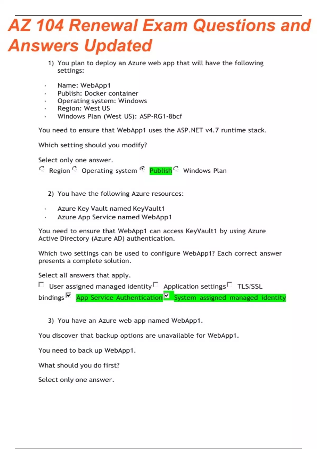 AZ-104 RENEWAL EXAM BUNDLE QUESTIONS AND CORRECT ANSWERS