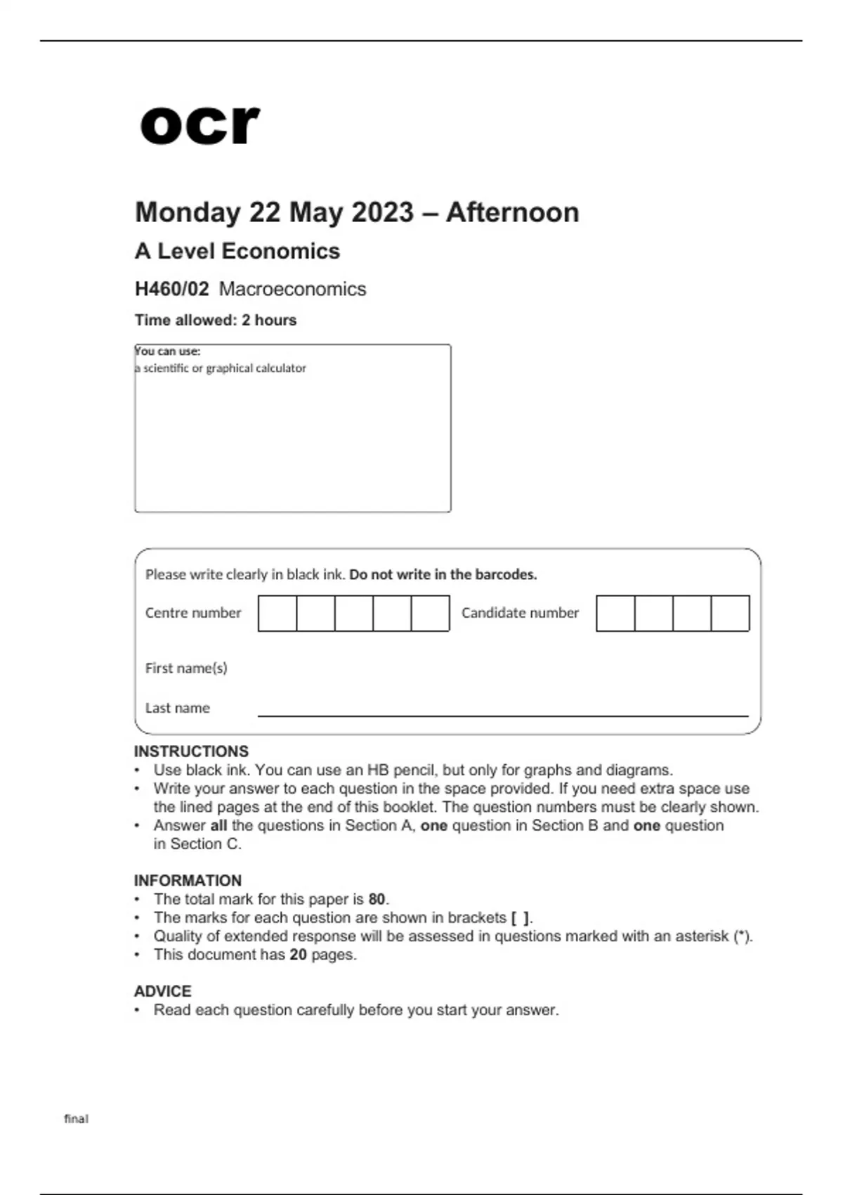ocr A Level Economics H460/02 Question Paper and Mark Scheme June2023. ocr A Level Economics H460/02 Question Paper May2023. ocr A Level Economics H460/02 Mark Scheme June2023. H460/02 QP and MS