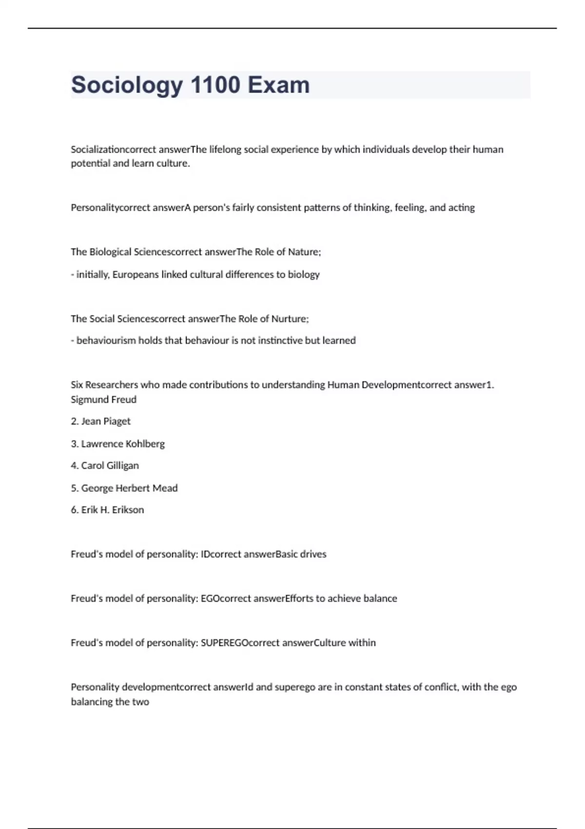 A BUNDLE FOR CLAIMS!!Sociology 1100 Exam with solutions
