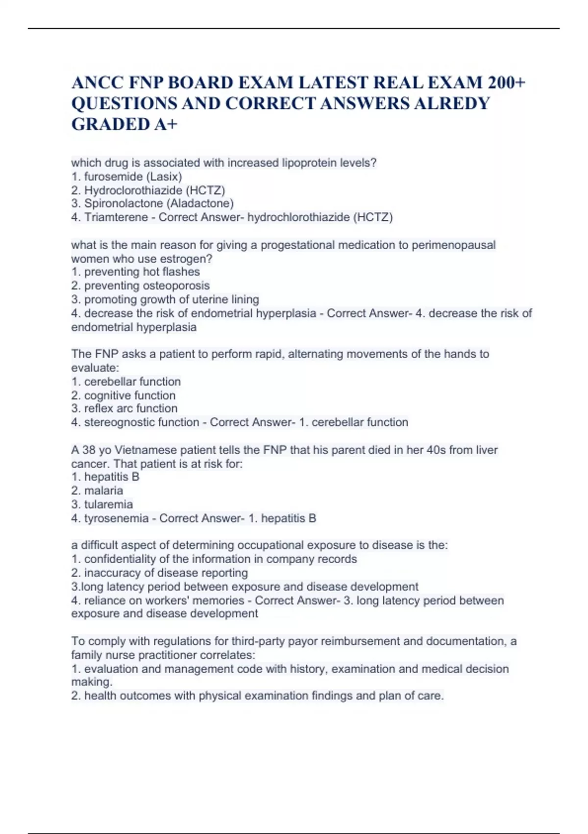 PACKAGE DEAL FOR ANCC FNP BOARD EXAM LATEST REAL EXAM 200+ QUESTIONS AND CORRECT ANSWERS WITH RATIONALES|ALREDY GRADED A+