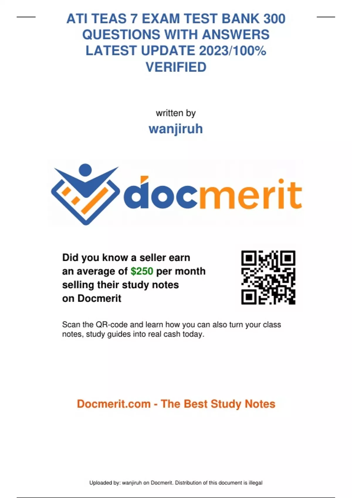 ATI TEAS 7 EXAM TEST BANK 300 QUESTIONS WITH ANSWERS LATEST UPDATE 2023/100% VERIFIED
