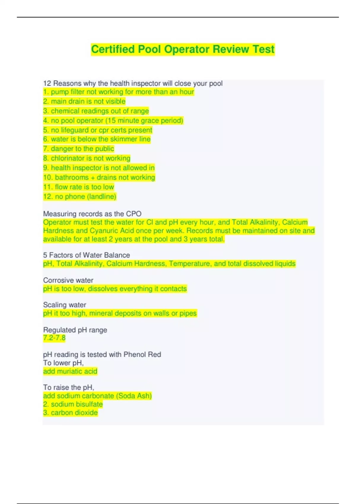 Certified Pool Operator Study Guide| Certified Pool Operator Handbook Practice Test (Fall 2023)| Certified Pool Operator Exam| Certified Pool Operator Review Test