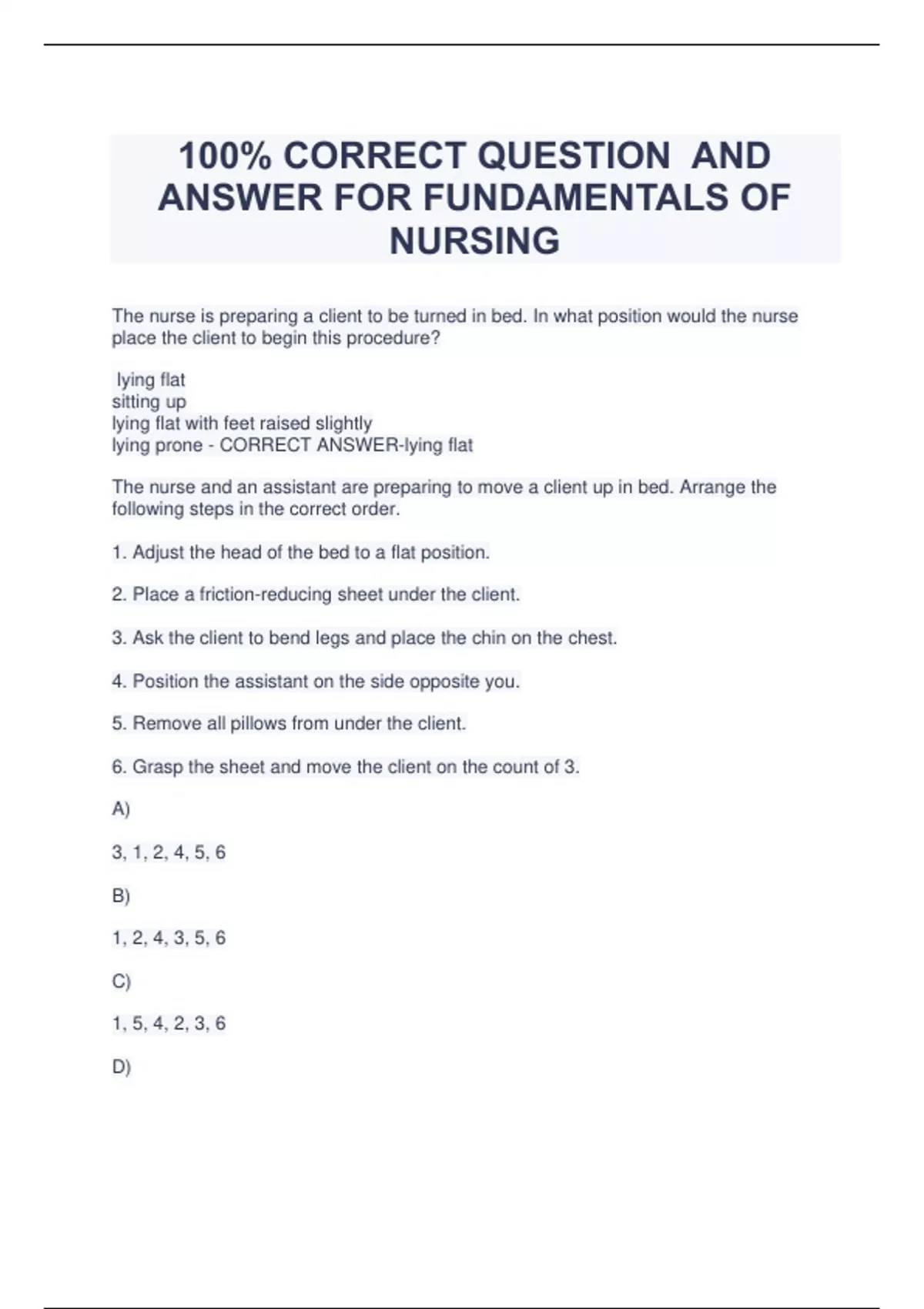 FUNDAMENTALS OF NURSING FULL EXAM FUNDAMENTALS OF NURSING EXAM GUIDE FUNDAMENTALS OF NURSING ELABORATED QUESTION AND ANSWER FUNDAMENTALS OF NURSING FULL EXAM FUNDAMENTALS NURSING EXAM TEST FUNDAMENTALS OF NURSING EXAM REVIEW 100% CORRECT QUESTION AND ANSWER FOR FUNDAMENTALS OF NURSING (EXAM TEST)FUNDAMENTALS OF N