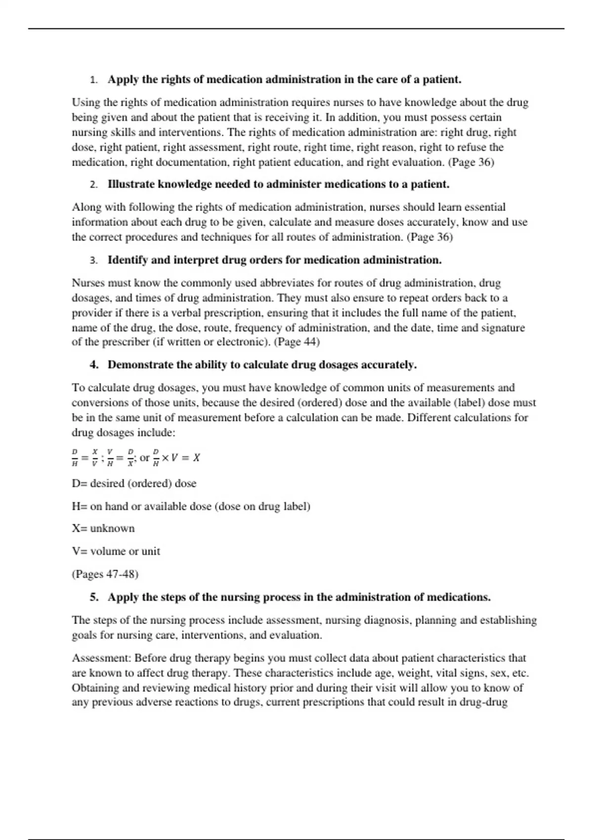 Pharmacology, RNSG 1301, Objectives for Chapters 1-3
