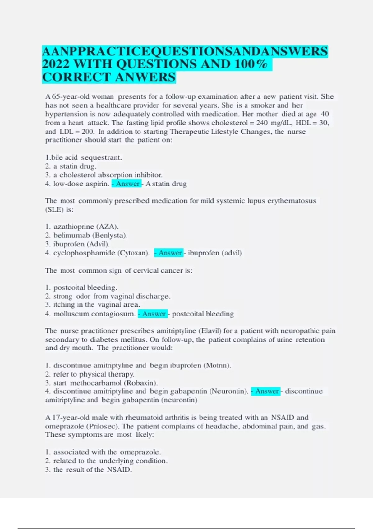 AANP Study Guide 100% Verified Ent,AANP FNP Certification Exam ,AANP ADULT GERONTOLOGY PRIMARY CARE,AANP AND ANCC Organizations and AANP PRACTICE QUESTIONS AND ANSWERS