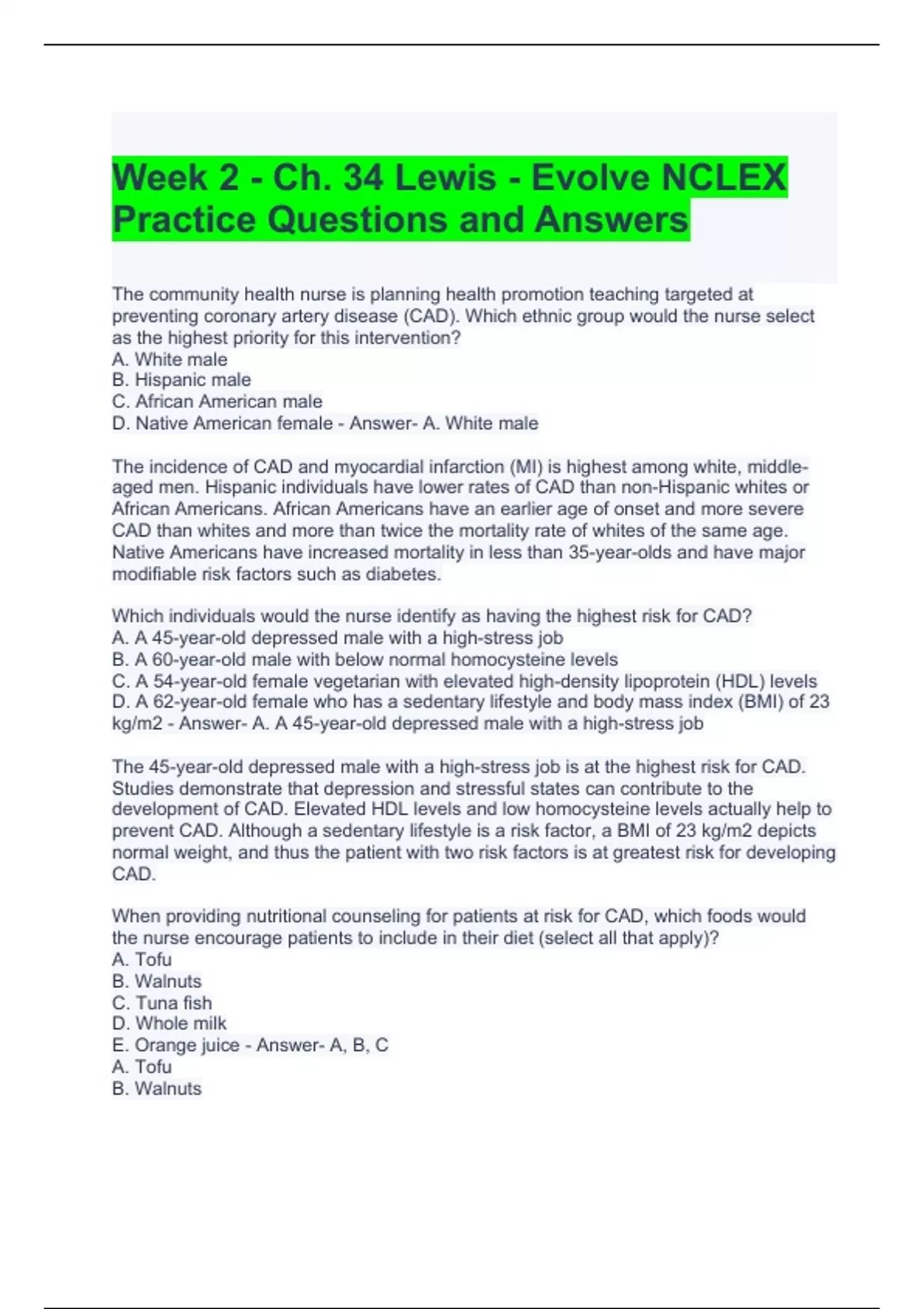 Week 2 - Ch. 34 Lewis - Evolve NCLEX Practice Questions and Answers 2023