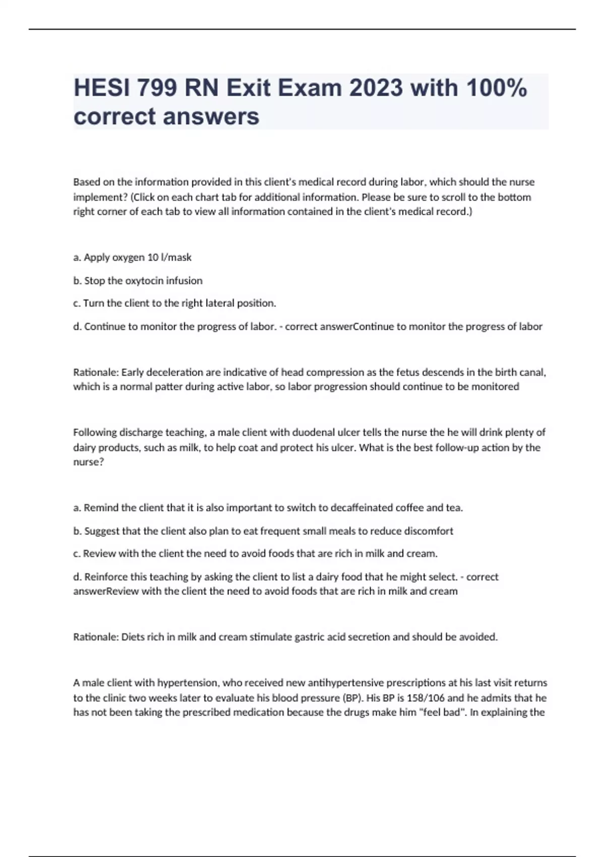HESI 799 RN Exit Exam 2023 with 100% correct answers HESI 799 RN Exit Exam 2023 with 100% correct answers