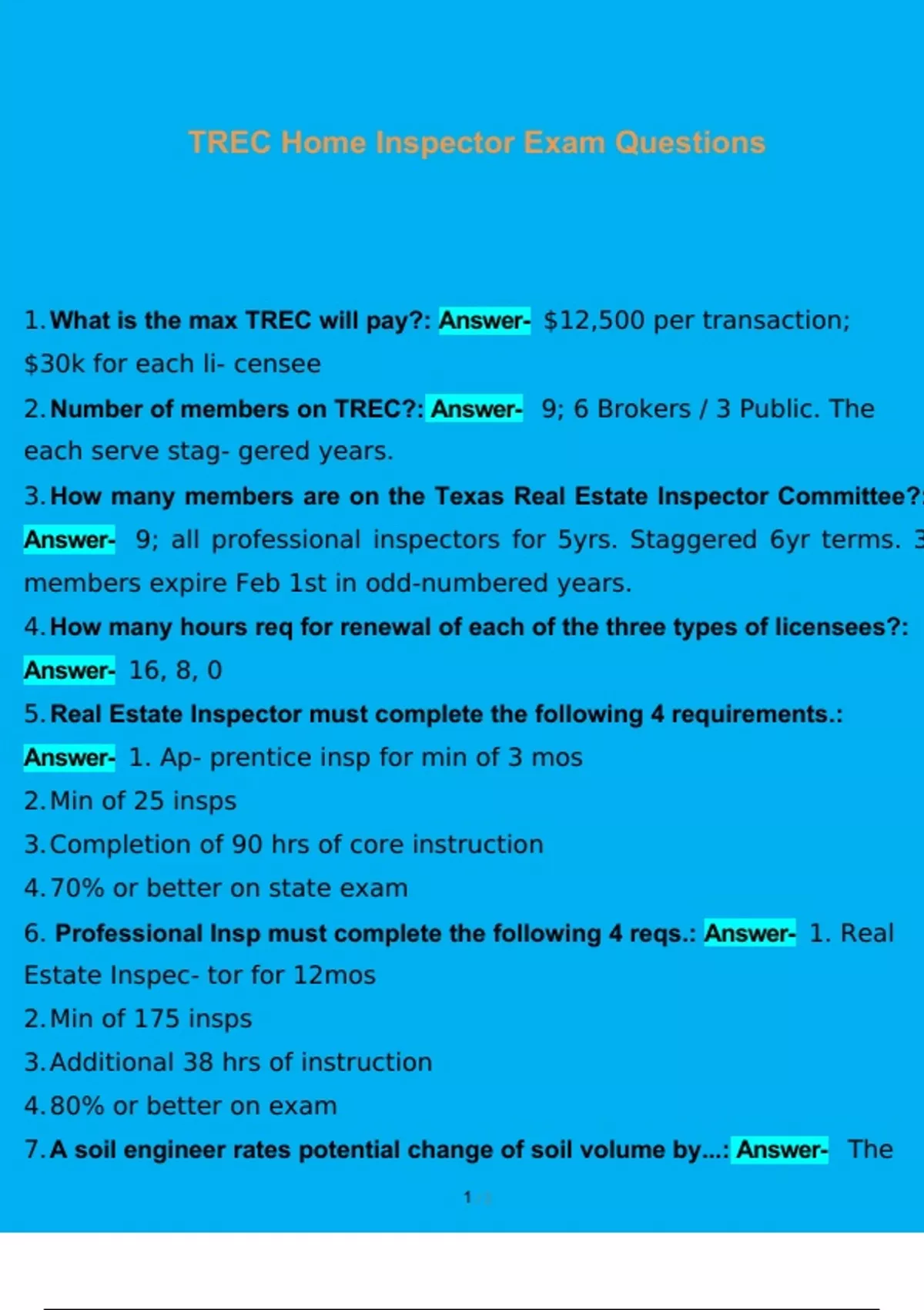 Home Inspector Bundled Exams 2023 with complete solution