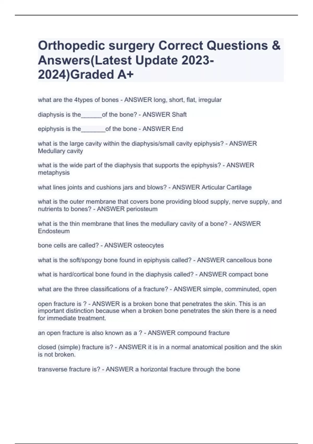 Orthopedic Surgery Complete Questions & Answers(Graded A+)