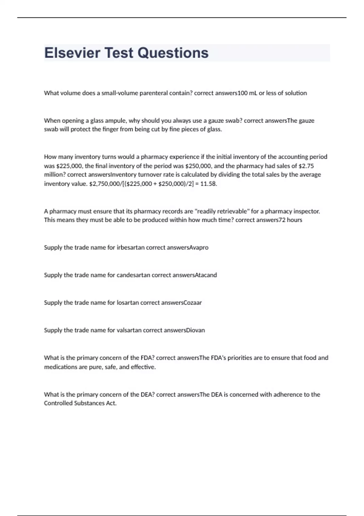Elsevier Test Questions & Answers 2023 (100% correct)