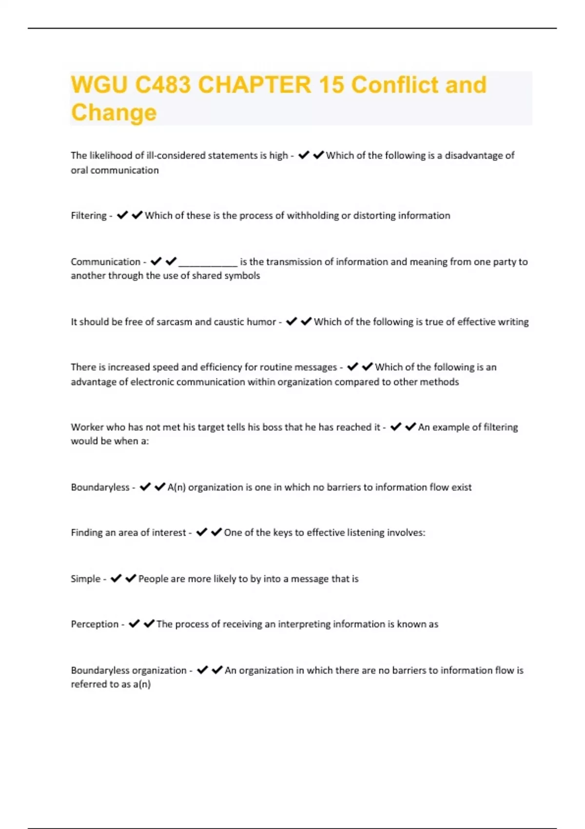 WGU C483 CHAPTER 15 Conflict and Change Exam Questions And Answers Already Graded A+