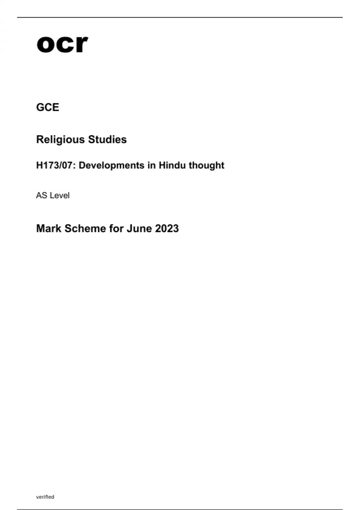 ocr AS Level Religious Studies H173/07 Question Paper and Mark Scheme June2023.