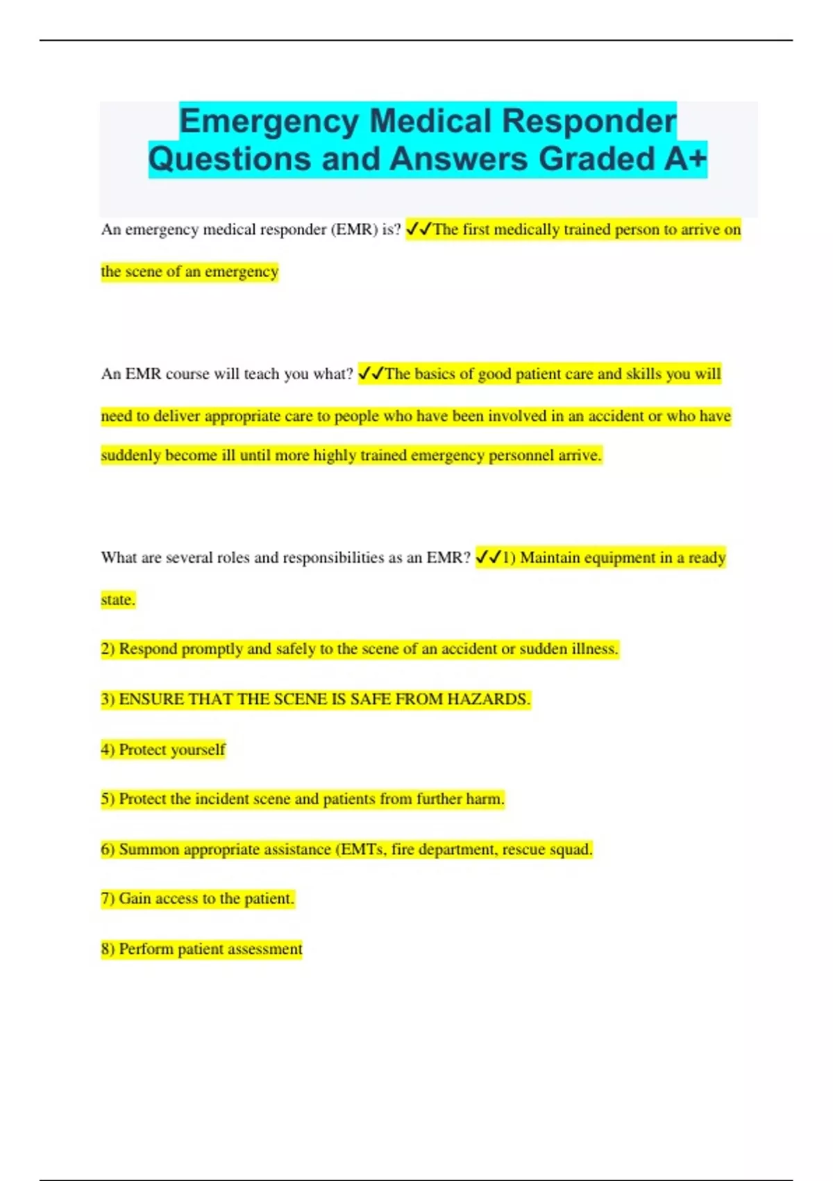 Emergency Medical Responder Bundled Exams Questions and Answers 100% Solved