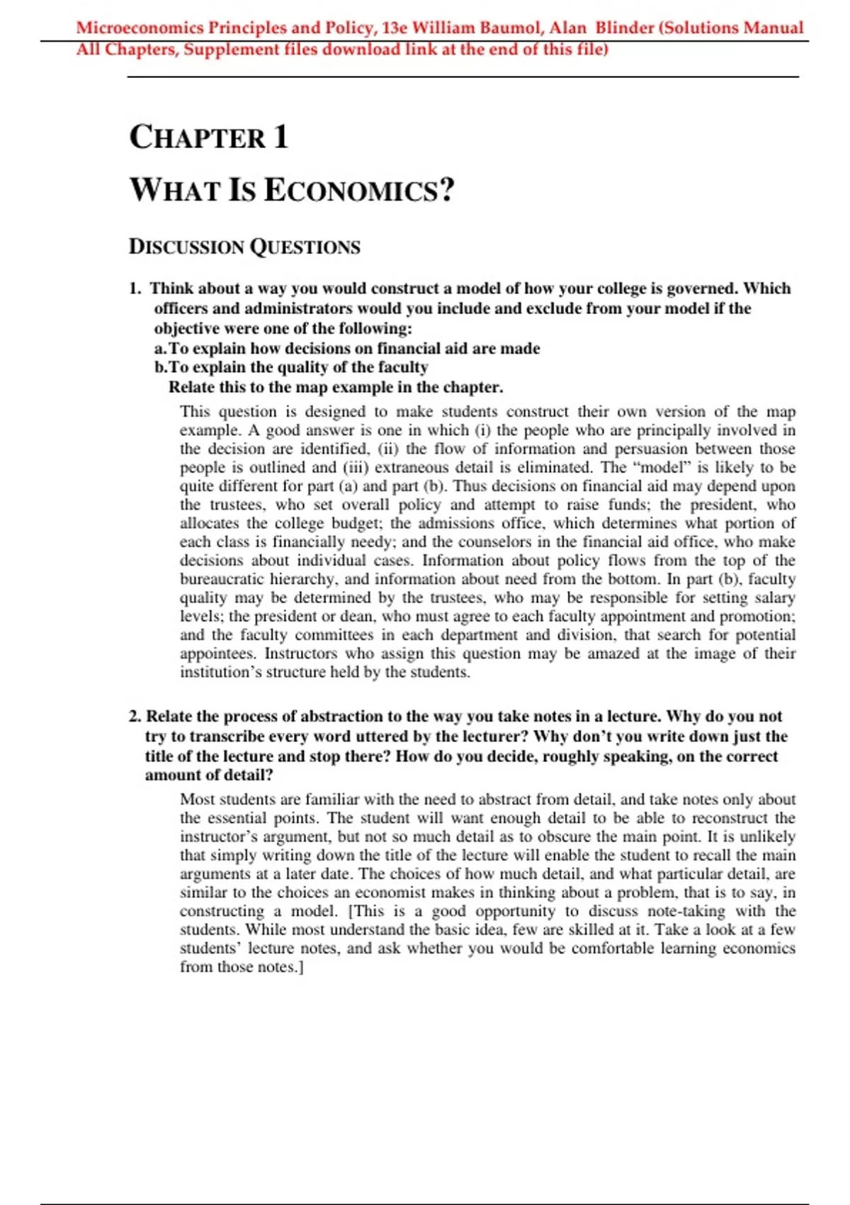 Solutions Manual with Test Bank For Microeconomics Principles and Policy 13th Edition By William Baumol, Alan Blinder (100% Original Verified, A Grade)