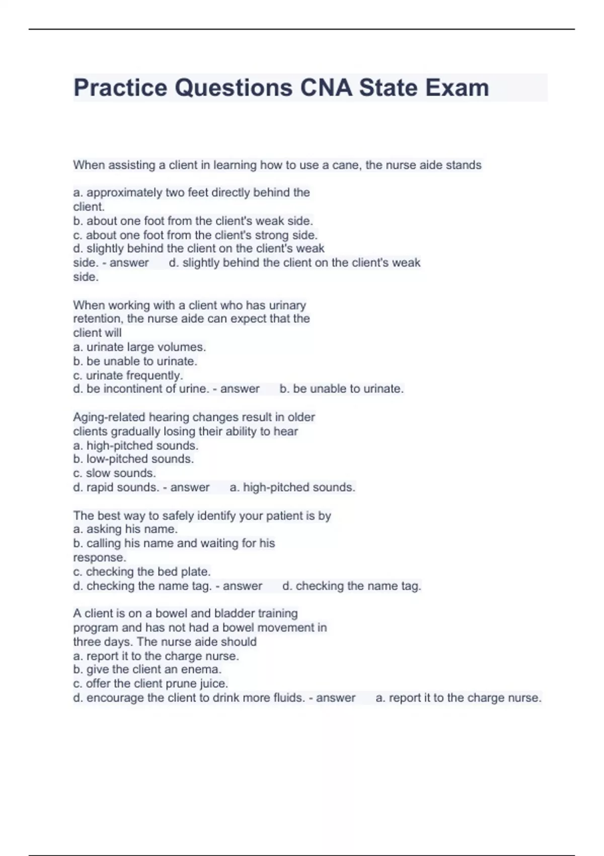 Exam (elaborations) CA CNA - Written Exam Questions with Accurate Answers 2023 Exam (elaborations) Cna ch 6 exam Questions and Answers latest updated Exam (elaborations) Cna chapter 1 Exam Questions and Answers 2023 Exam (elaborations) CNA chapter 2 exam Questions with complete Answers 2023 Exam (elaborations) CNA Chapter 3 Exam Questions