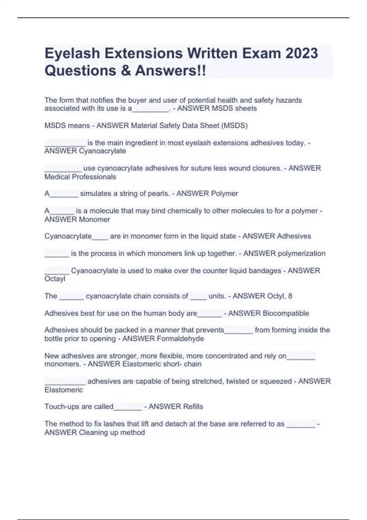 TDLR EYELASH EXTENSION EXAM BUNDLE 2023 QUESTIONS & ANSWERS(GRADED A+)