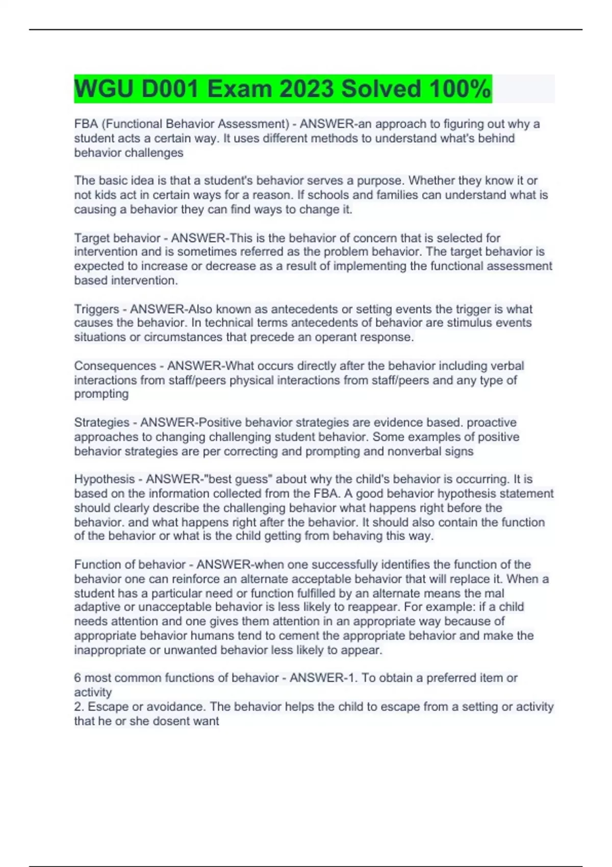 Exam (elaborations) WGU D001 Exam 2023 Solved 100% 2 Exam (elaborations) WGU D001 Pre-Assessment Questions and Answers 100% Correct 3 Exam (elaborations) WGU D001 Behavioral Support Strategies for K-12 Learners with Mild to Moderate Exceptionalities Exam 2023/2024 4 Exam (elaborations) WGU D101 Cost and Managerial Accounting 2023/2024 Exam