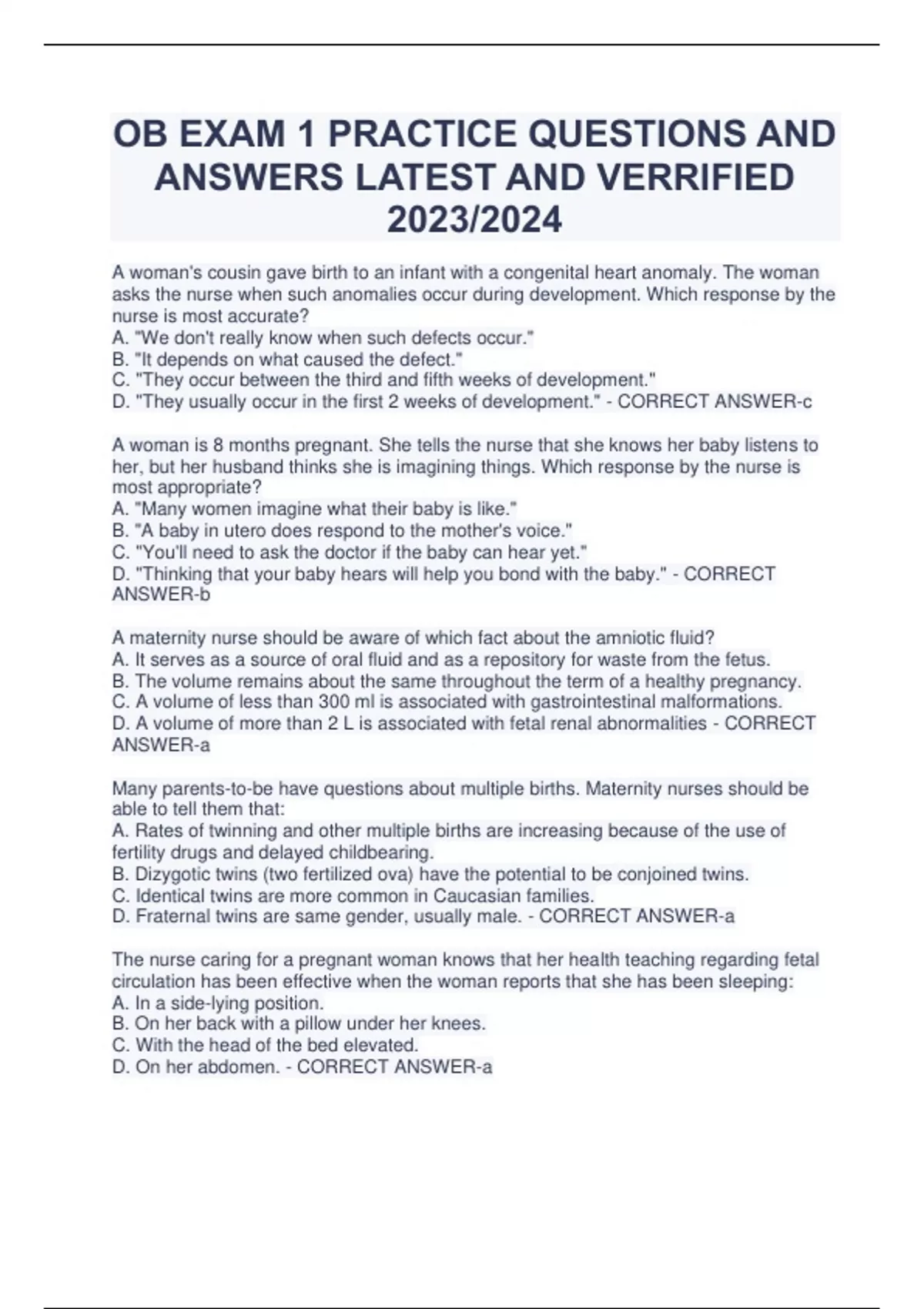 Package deal for OB EXAM TEST (QUESTIONS AND ANSWERS) 2023/2024