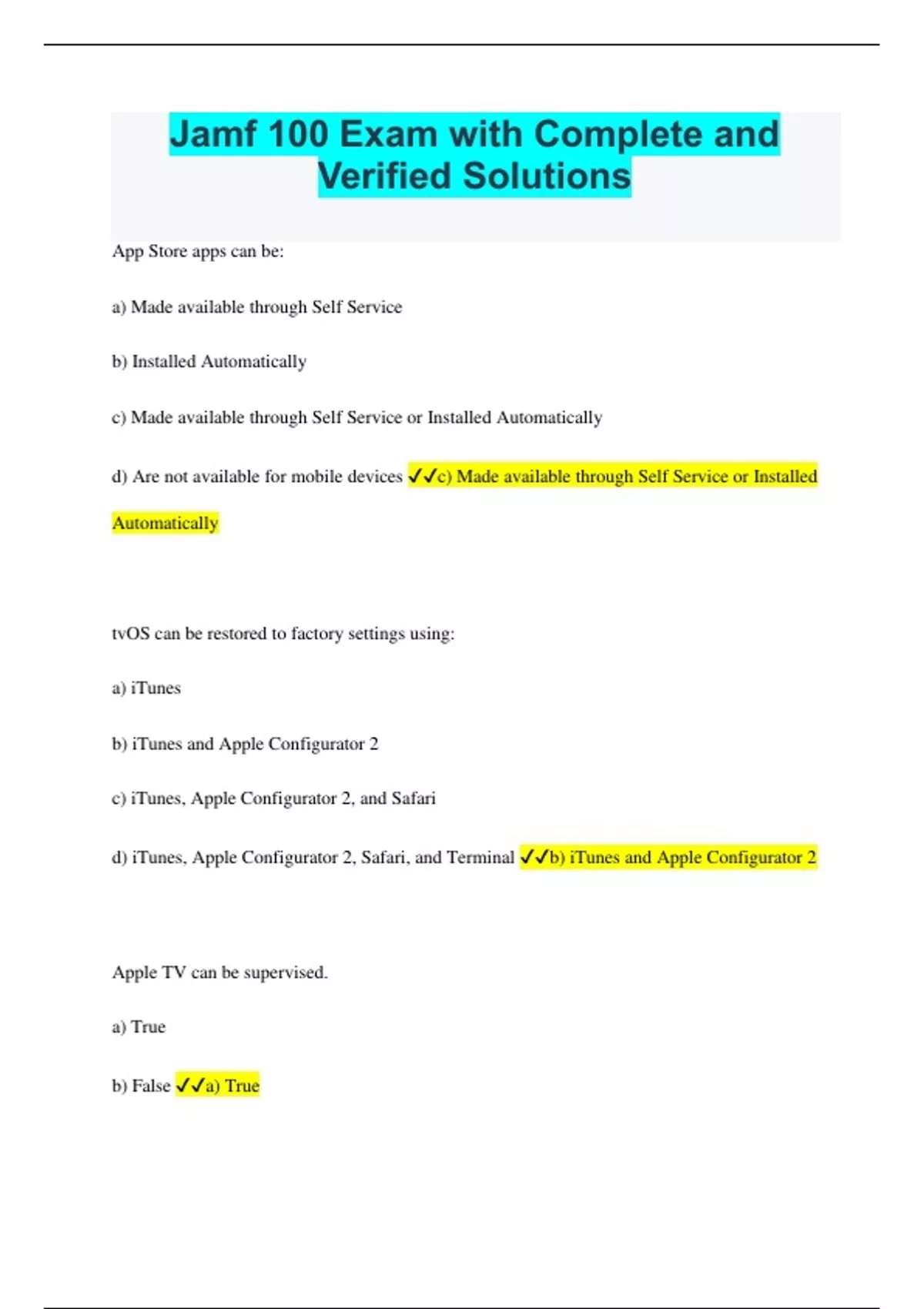 JAMF 100 PACK| All Exams Bundled |Questions with Correct Answers with Complete Solutions Already Passed| 2023 Update Graded A+