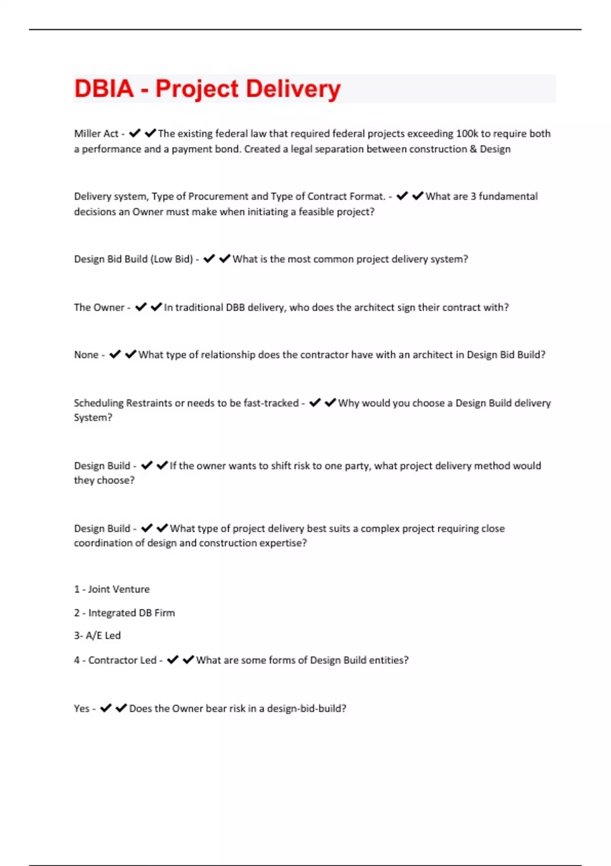 DBIA - Project Delivery Exam Solved 100% Correct!!
