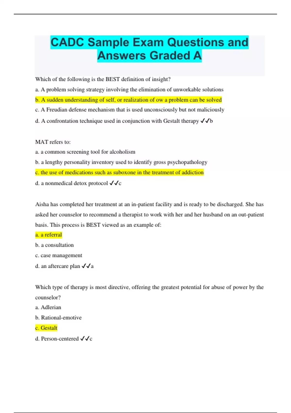 CADC BUNDLED Practice Exams| Prep Questions with Correct Answers Rated 100% Pass| Latest 2023 Update