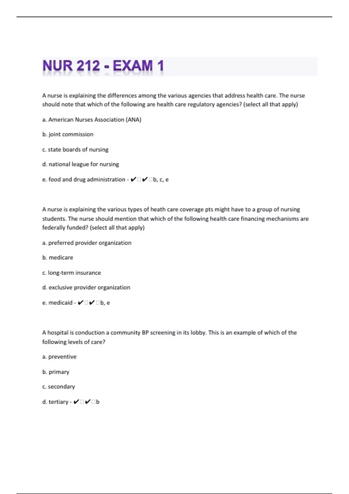 NURS 212|67 Practice Questions And Answers