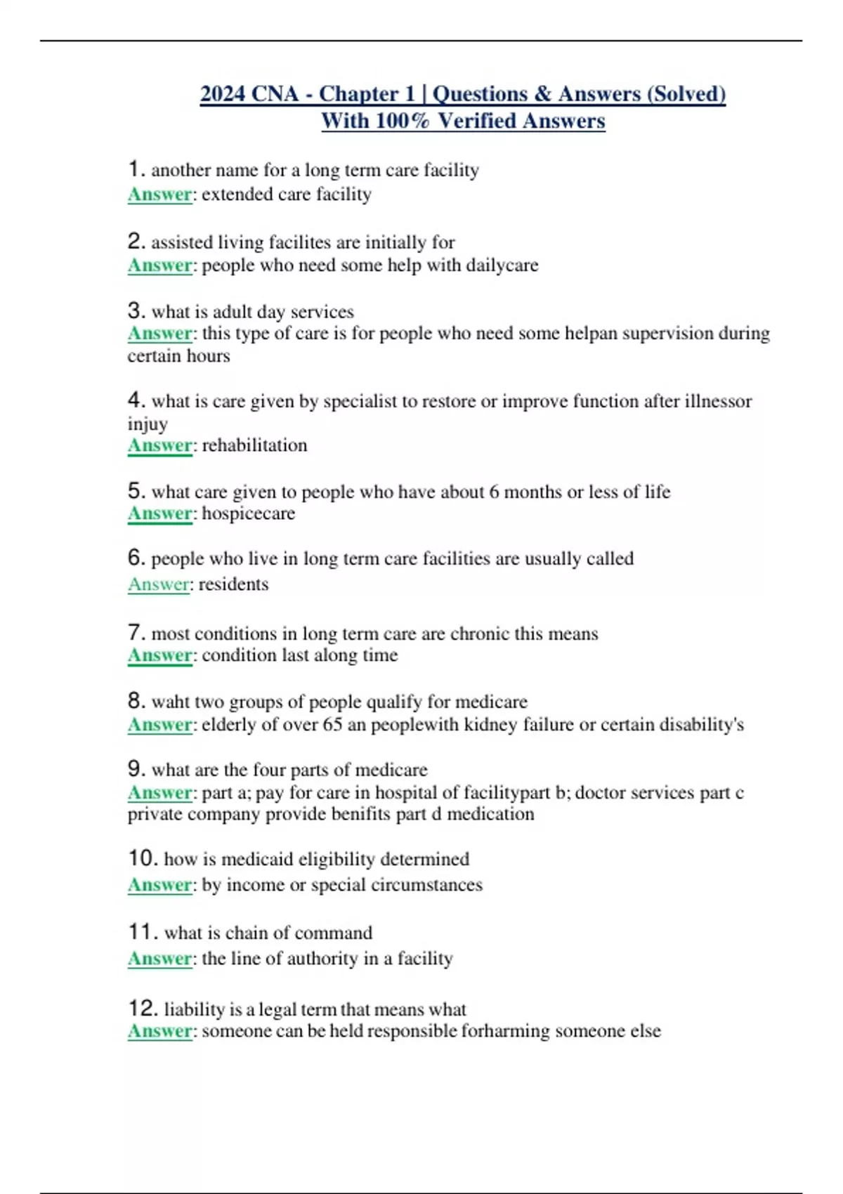 2024 CNA Exam ( Chapter 1 - 30 ) | Questions & Answers (Solved) With 100% Verified Answers