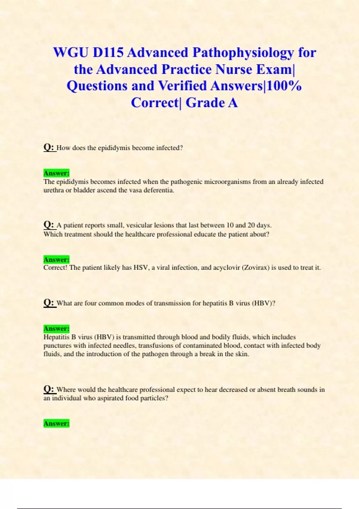 WGU D115 Final Exam (Latest 2023/ 2024) Advanced Pathophysiology for the Advanced Practice Nurse Exam| Actual Questions and Verified Answers|100% Correct| Already Graded A