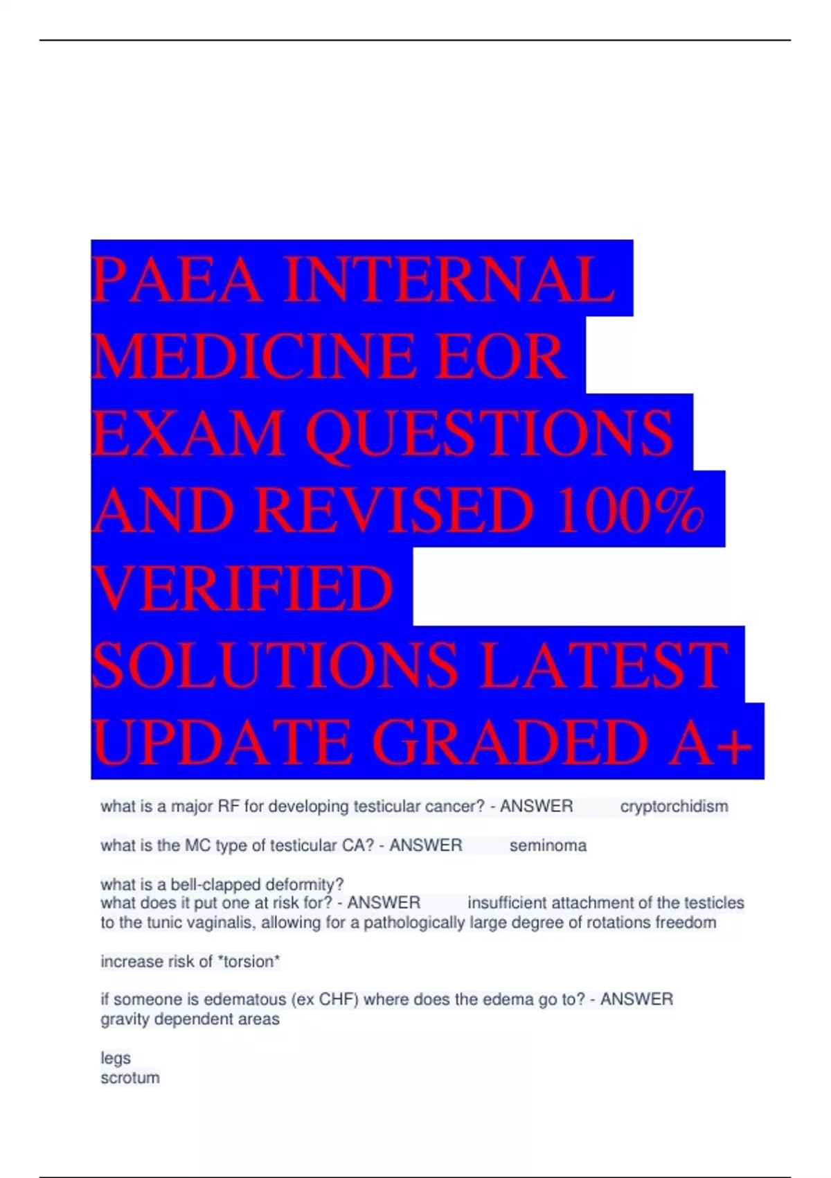 bundle for PAEA INTERNAL MEDICINE EOR PULMONOLOGY EXAM QUESTIONS WITH 100% VERIFIED SOLUTIONS