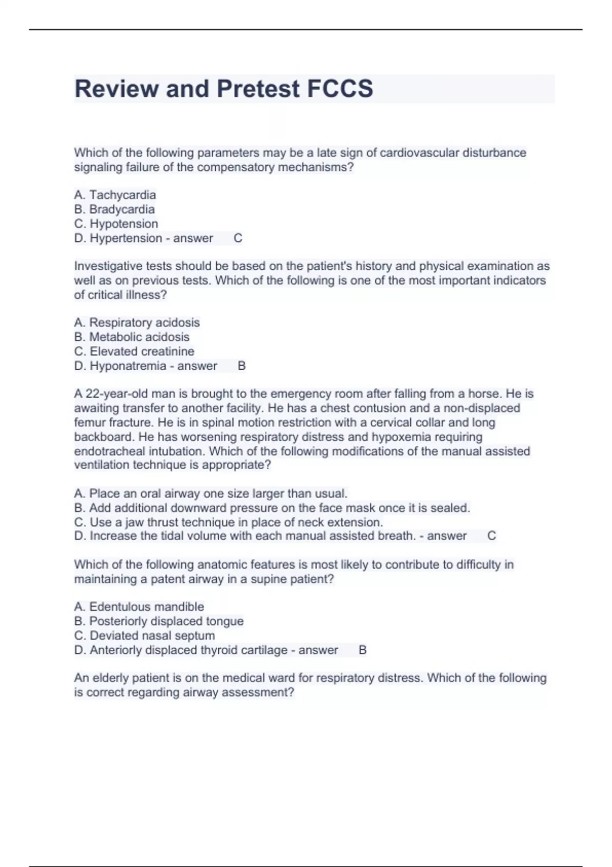 Exam (elaborations) FCCS Cert Questions and Answers, Latest updated 2023 Exam (elaborations) FCCS Exam 1 Questions and Answers 2023 Exam (elaborations) FCCS Exam 1B Questions and Answers 2023 Exam (elaborations) FCCS EXAM 3 QUESTIONS WITH ACCURATE ANSWERS 100% CORRECT Exam (elaborations) FCCS Flashcards Questions with Accurate Answers 2023