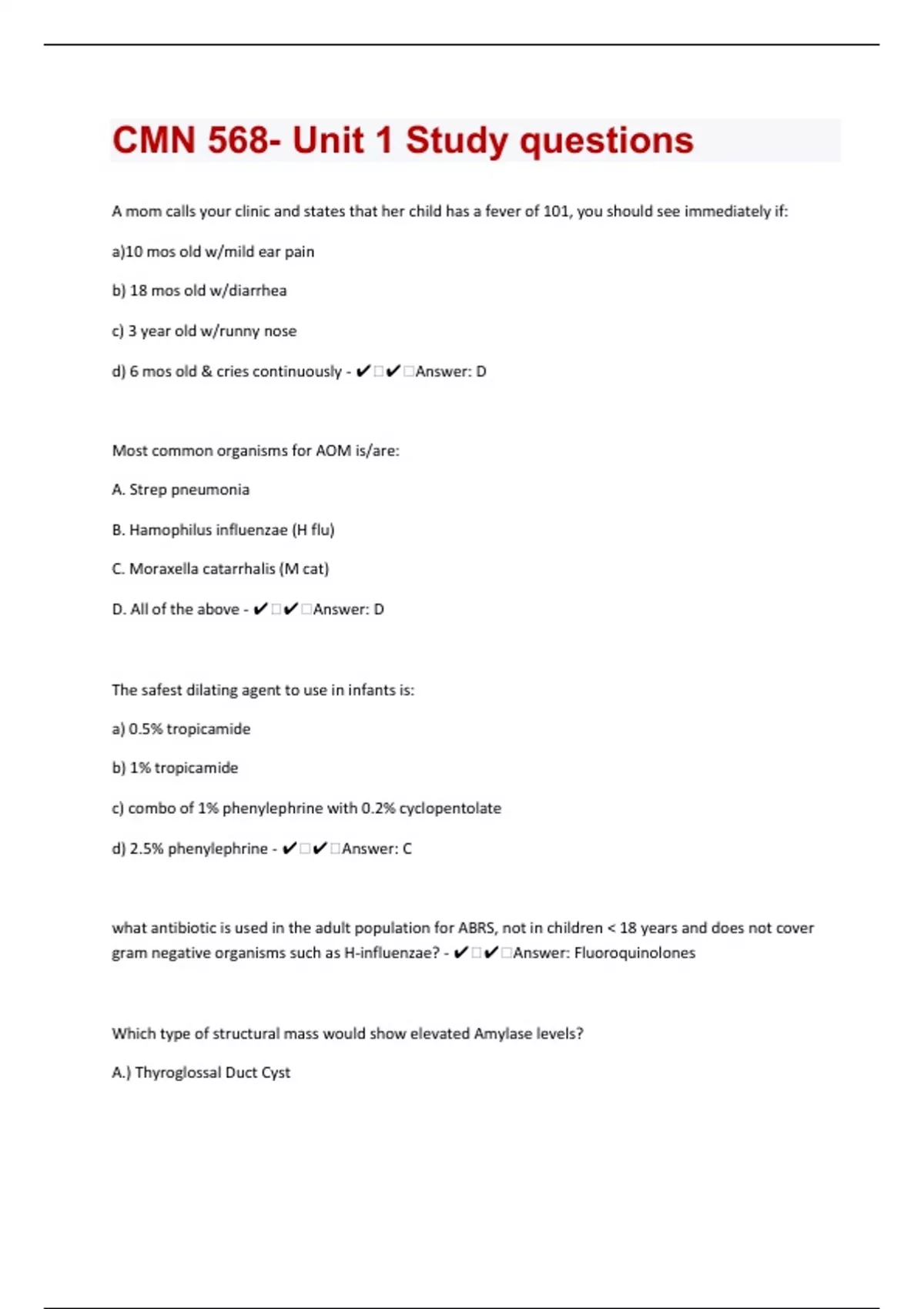 CMN 568- Unit 1|103 Study questions With Correct Answers