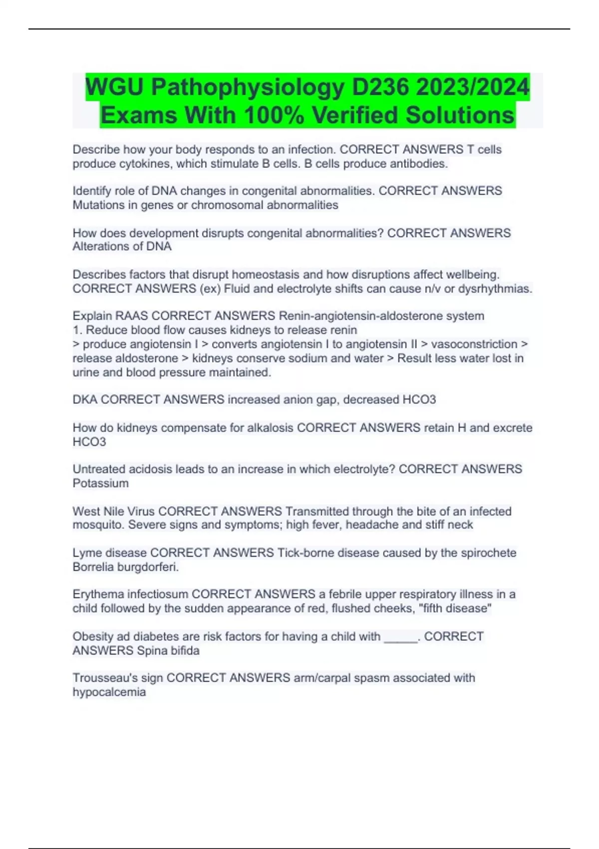 WGU Pathophysiology D236 2023/2024 Exams With 100% Verified Solutions WGU patho D236 - Goodluck! Q&A 100% Guaranteed Success WGU pathophysiology D236 Exam Complete Questions And Answers |VERIFIED