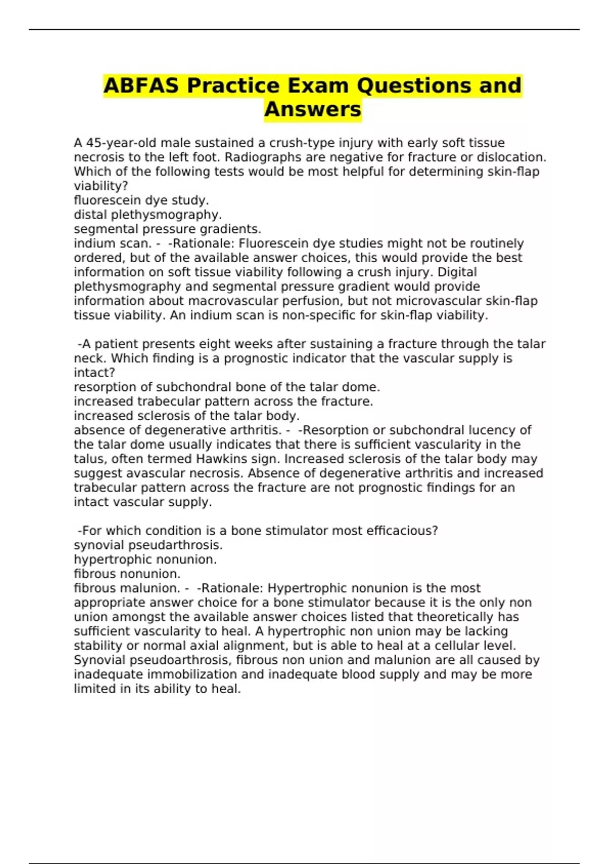 ABFAS Rearfoot Exam Questions And Answers with 100% Scores