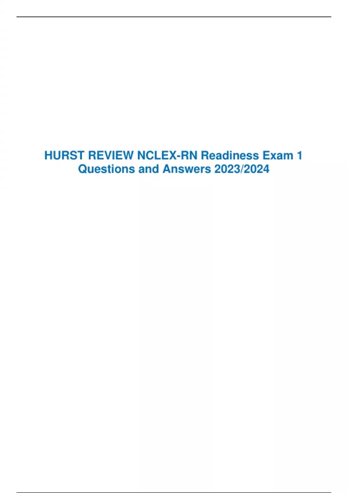 HURST REVIEW NCLEX-RN Readiness Exam 1 Questions and Answers 2023/2024
