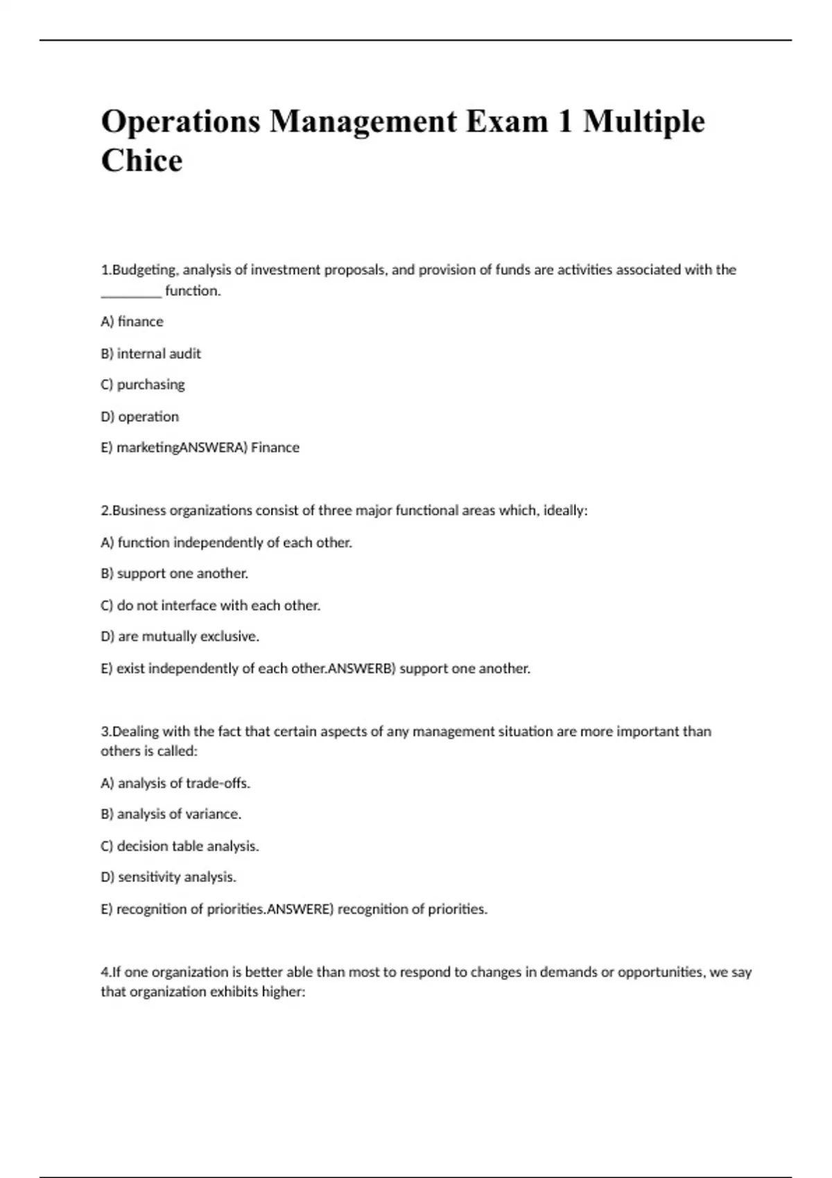Exam 1 Operations Management Questions and Answers 2023/2024