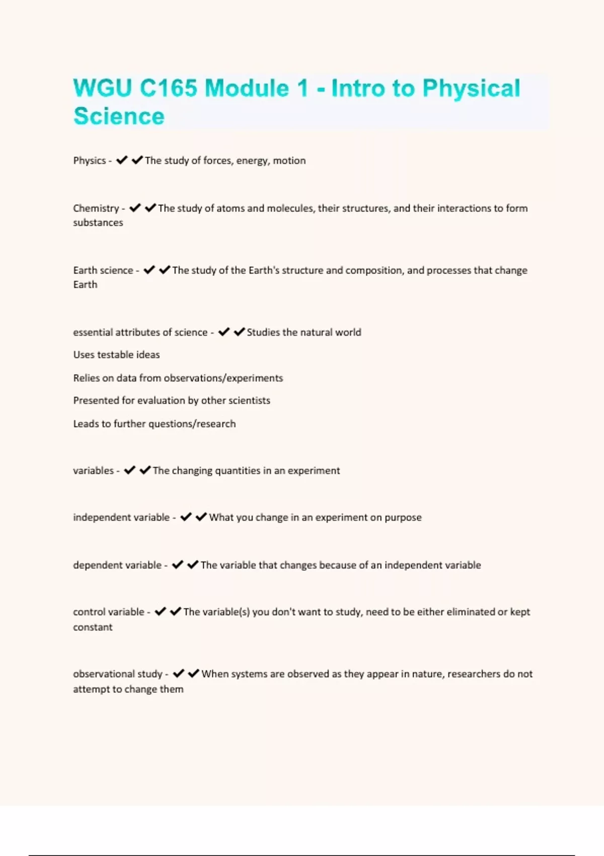 WGU C165 Module 1 - Intro to Physical Science Exam Solved Questions & Answers Graded A+