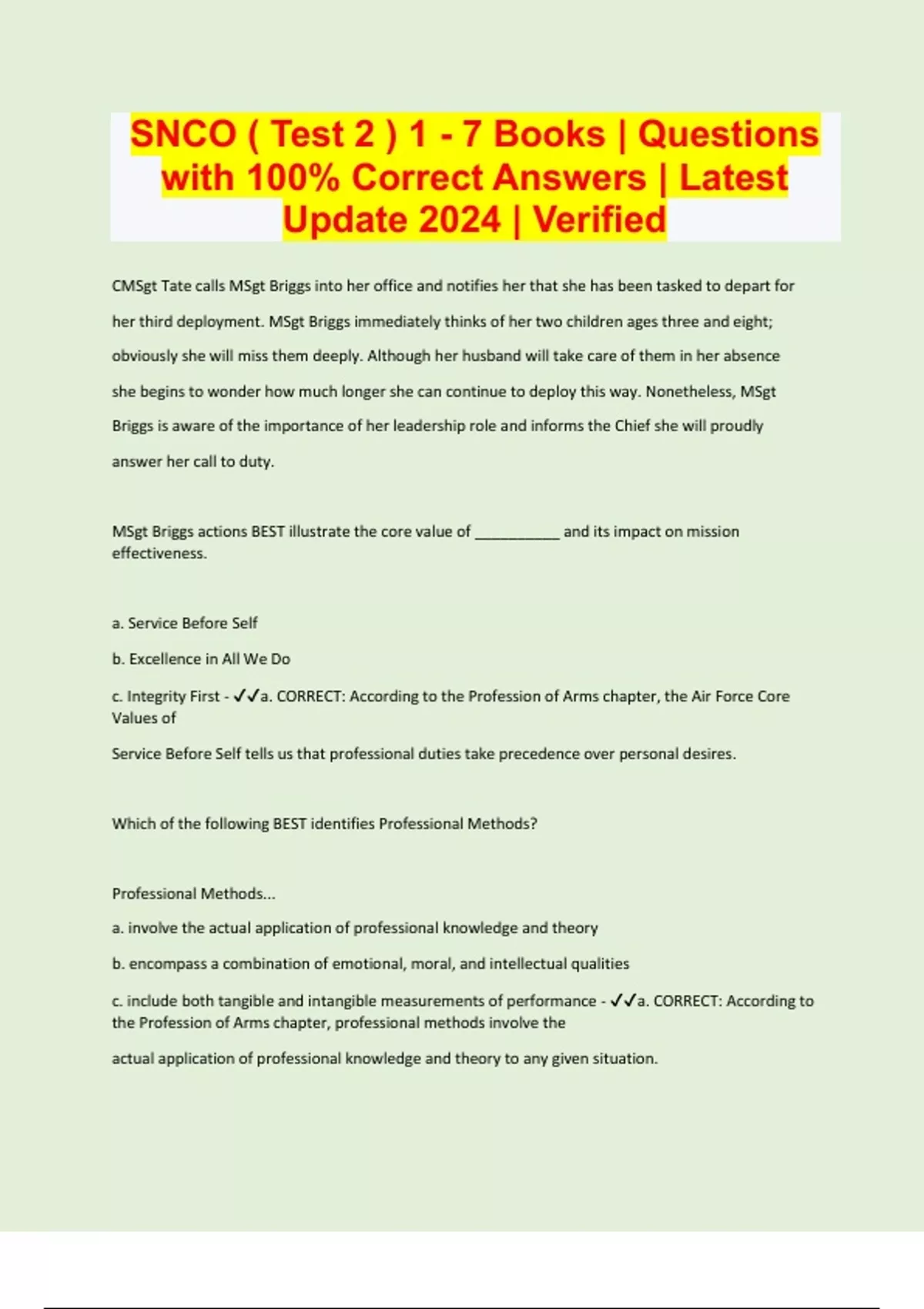 SNCO ( Test 2 ) 1 - 7 Books | Questions with 100% Correct Answers | Latest Update 2024 | Verified | 45 Pages