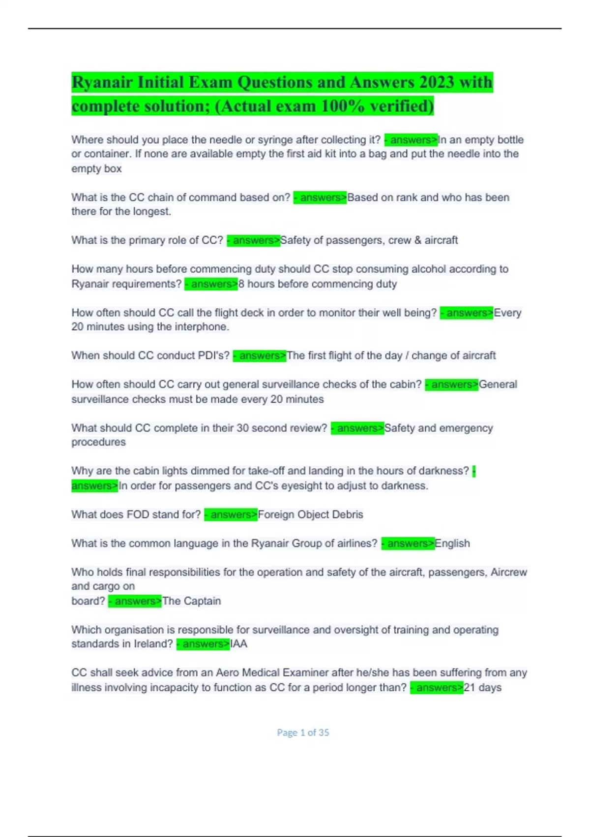 Ryanair Bundled Exams with complete solutionRyanair Bundled Exams with complete solution