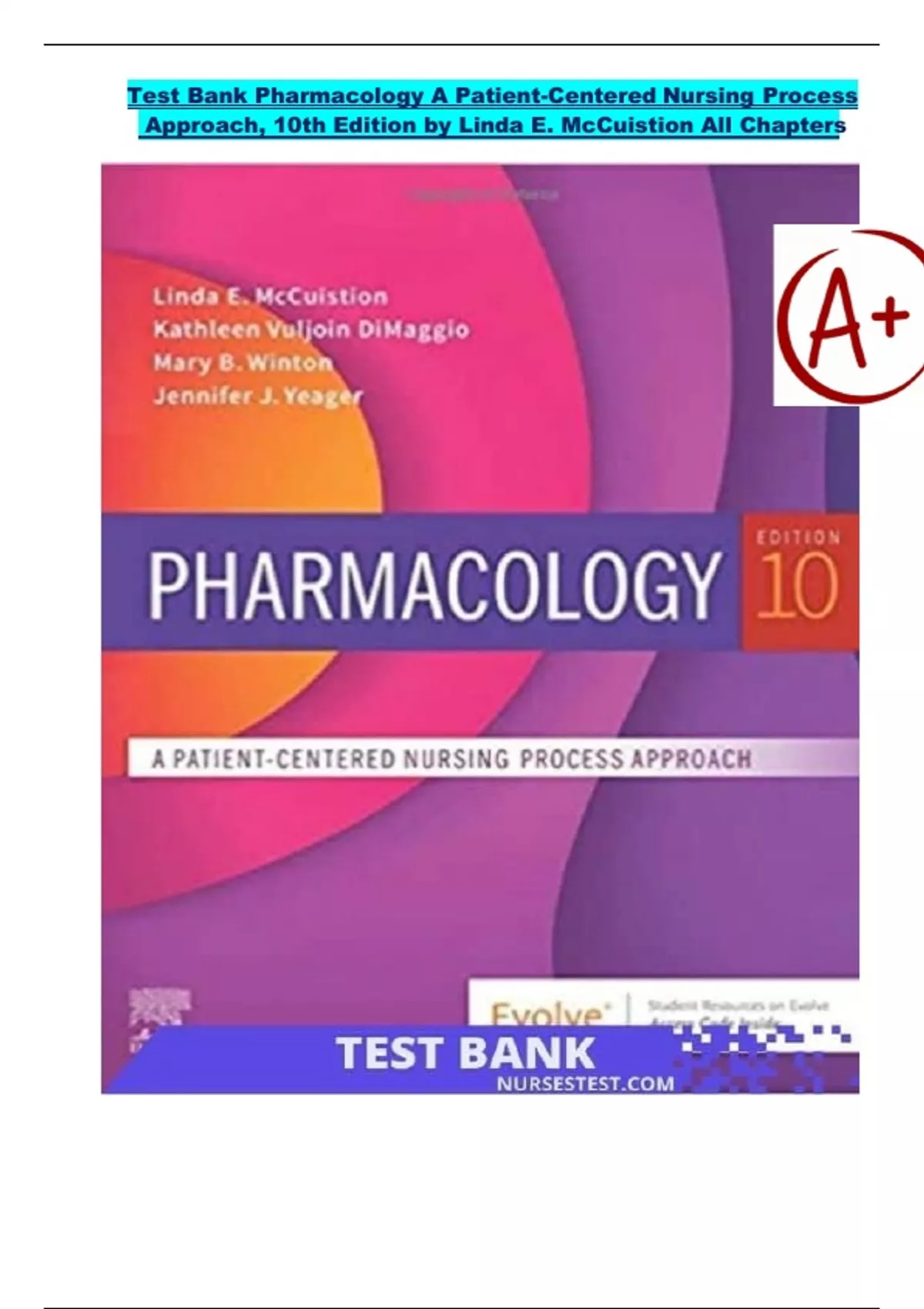 Test Bank For Pharmacology A Patient-Centered Nursing Process Approach 10Th and 11th Edition, Test Bank By Linda E. McCuistion, Kathleen DiMaggio, Mary Beth Winton, Jennifer Yeager All Chapter With Complete Solutions