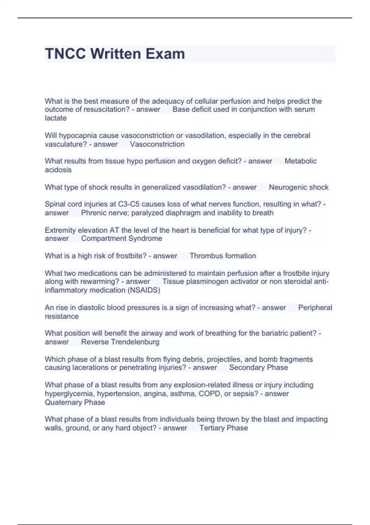 Exam (elaborations) TNCC 8th edition A Questions with Accurate Answers 2023 Exam (elaborations) TNCC 8th Edition Exam 2 Questions and Answers, Rated A+ 2023 Exam (elaborations) TNCC 8th edition Exam Questions and Answers, Graded A+ 2023 Exam (elaborations) TNCC 8th Edition Questions and Answers, Graded A+ 2023 Exam (elaborations) TNCC EXAM